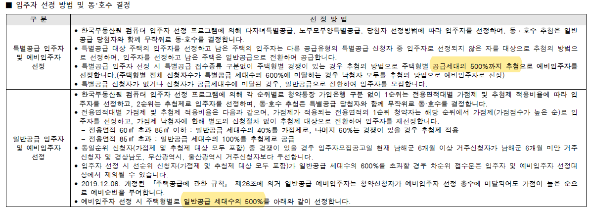 ▪ 전용면적 85m² 초과 : 추첨제 100%