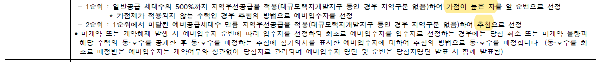 ▪ 전용면적 85m² 이하 : 가점제 40% + 추첨제 60%