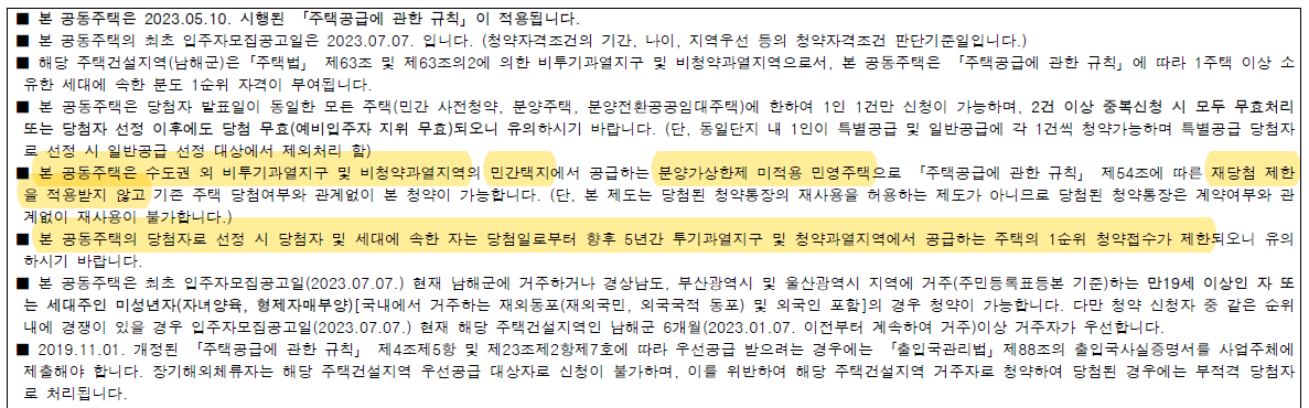 ▪ 지역 우선 : 남해군 6개월 이상 거주자 100%