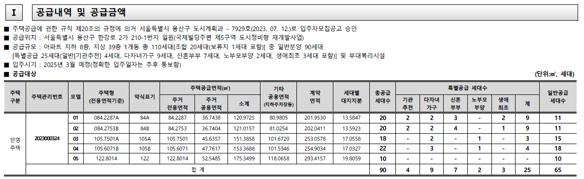 [특별공급 25세대(일반[기관추천] 4세대, 다자녀가구 9세대, 신혼부부 7세대, 노부모부양 2세대, 생애최초 3세대 포함)] 및 부대복리시설