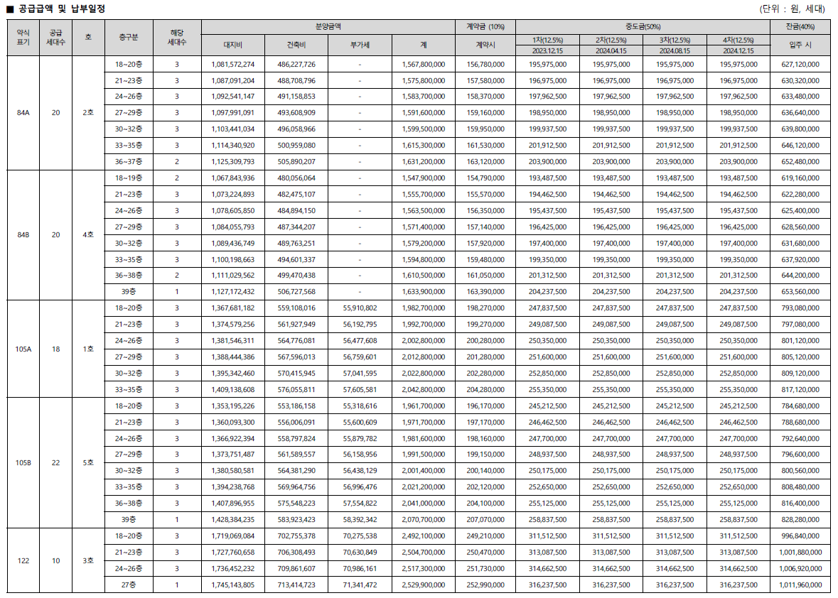 ▪ 계약금 10% + 중도금 50% + 잔금 40%