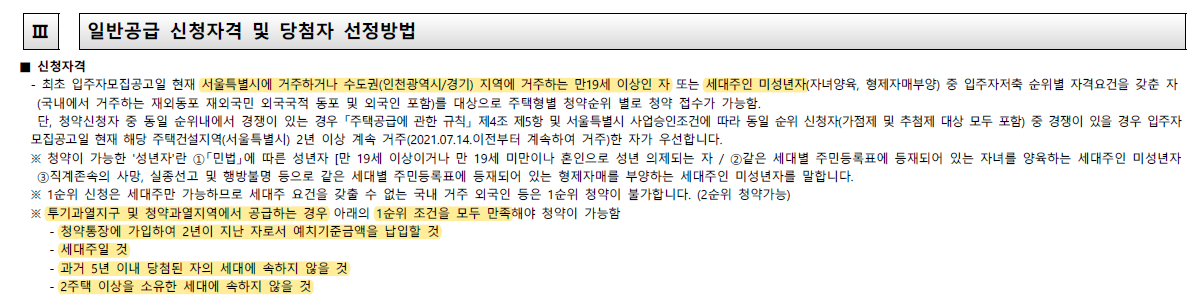 ▪ 지역 우선 : 서울특별시 2년 이상 거주자 100%