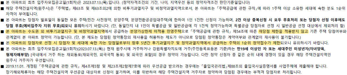 ▪ 재당첨제한 : 없음(5년간 투기과열지구 및 청약과열지역 1순위 접수제한)