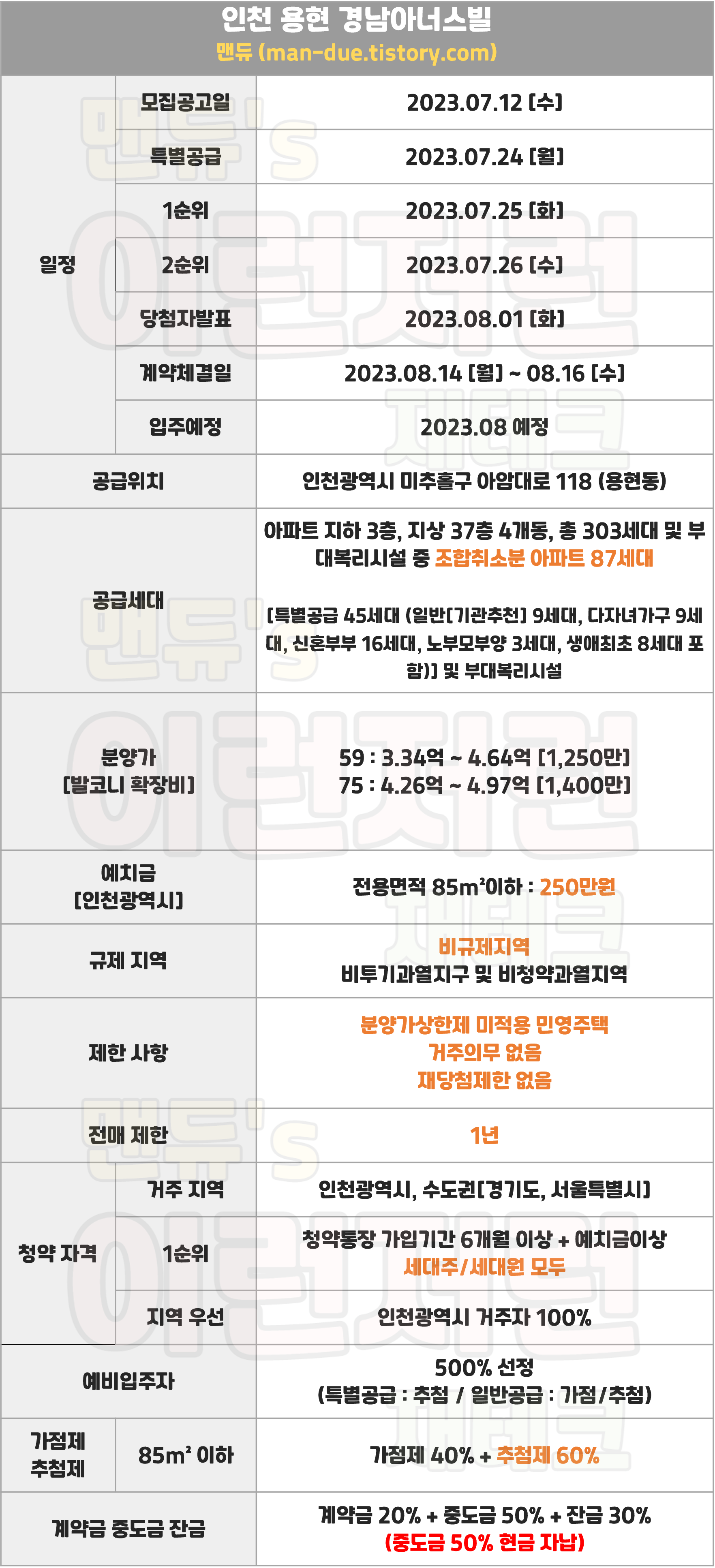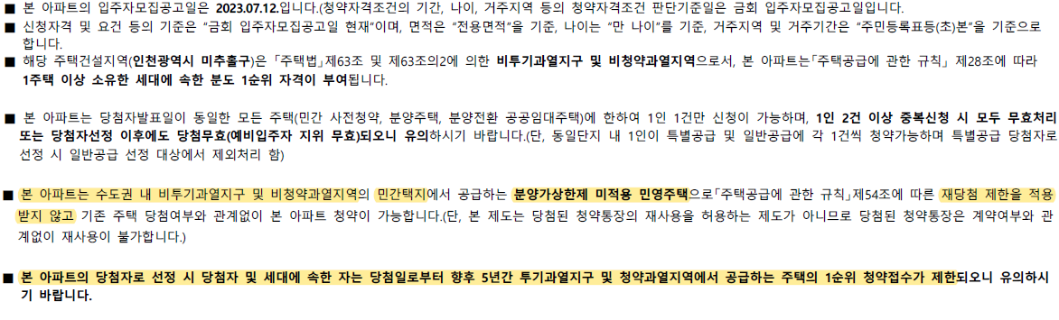 ▪ 재당첨제한 : 없음(5년간 투기과열지구 및 청약과열지역 1순위 접수제한)