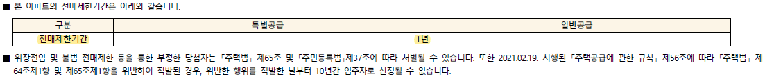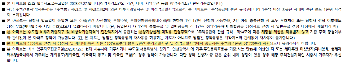 ▪ 재당첨제한 : 없음(5년간 투기과열지구 및 청약과열지역 1순위 접수제한)