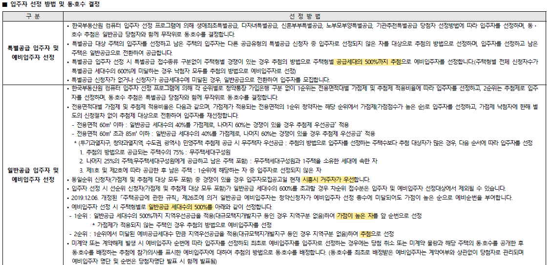 ▪ 전용면적 85m² 이하 : 가점제 40% + 추첨제 60%