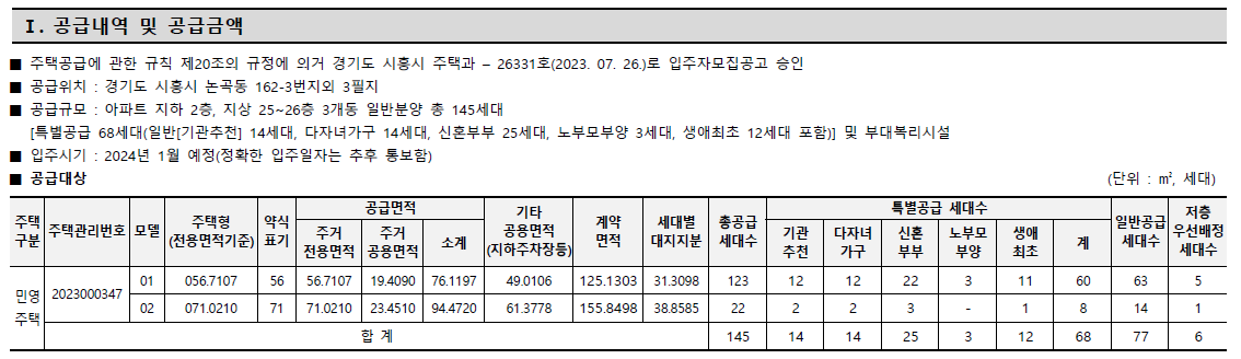 [특별공급 68세대(일반[기관추천] 14세대, 다자녀가구 14세대, 신혼부부 25세대, 노부모부양 3세대, 생애최초 12세대 포함)