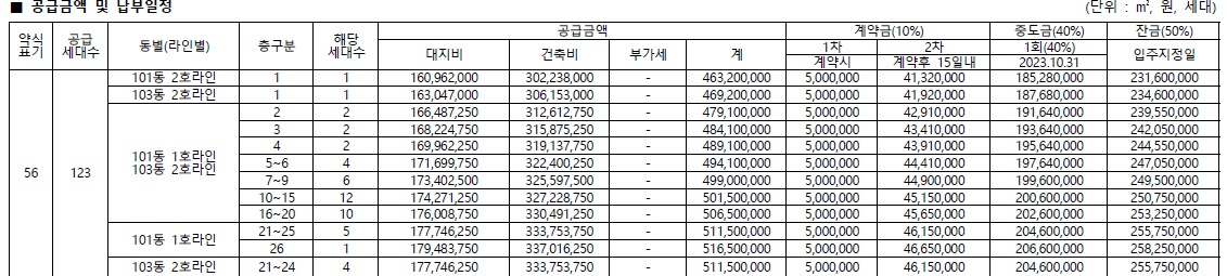 ▪ 계약금 10% + 중도금 40% + 잔금 50%