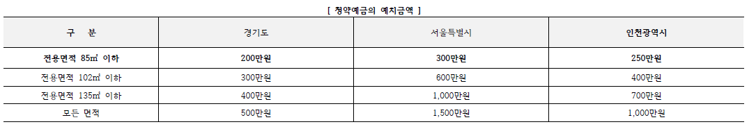 ▪ 청약통장 가입기간 1년 이상 + 예치금 이상