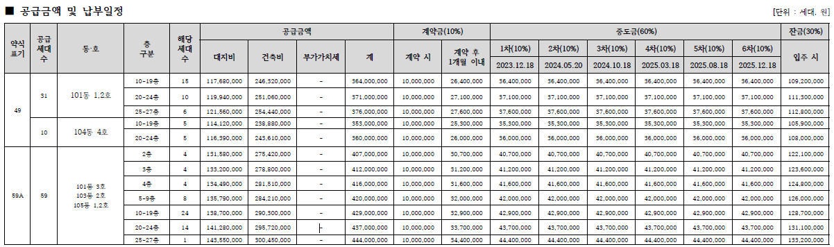 ▪ 계약금 10% + 중도금 60% + 잔금 30%