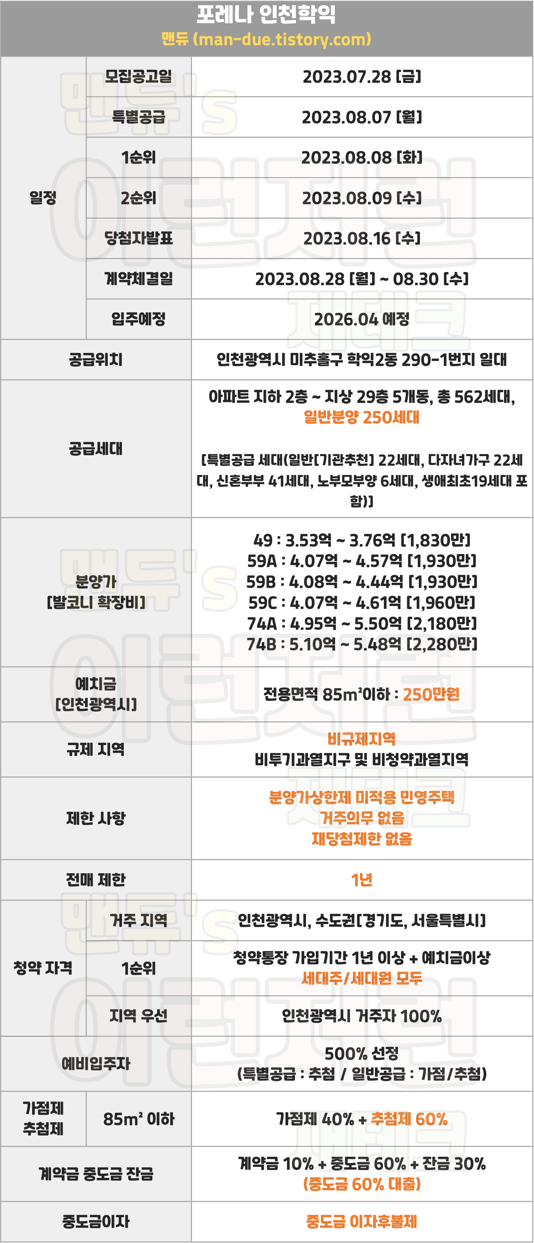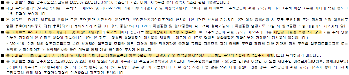 ▪ 재당첨제한 : 없음(5년간 투기과열지구 및 청약과열지역 1순위 접수제한)