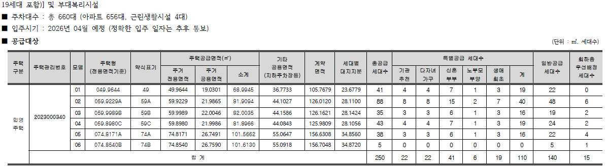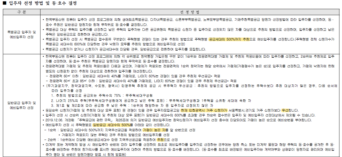 [특별공급 세대(일반[기관추천] 22세대, 다자녀가구 22세대, 신혼부부 41세대, 노부모부양 6세대, 생애최초19세대 포함)]