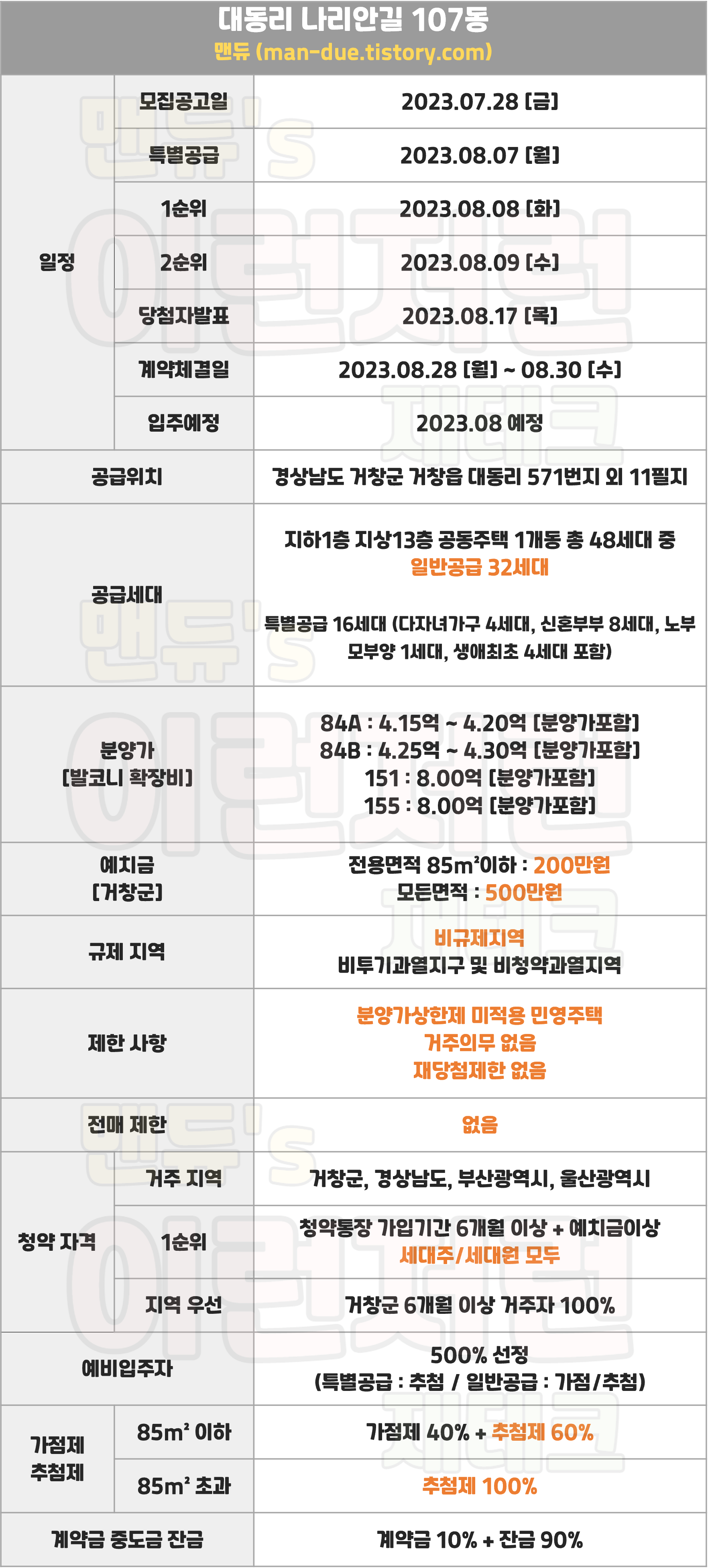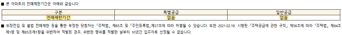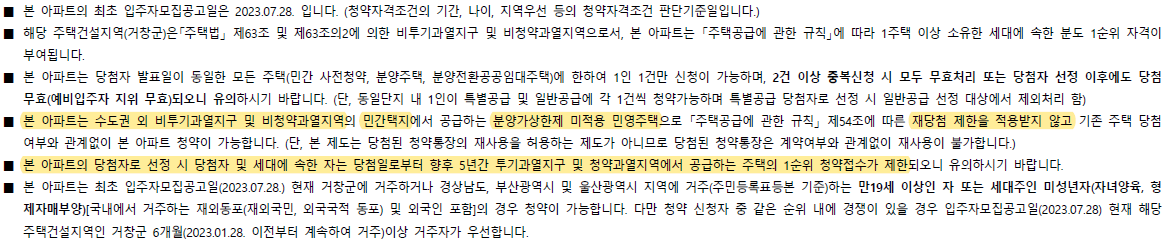 ▪ 재당첨제한 : 없음(5년간 투기과열지구 및 청약과열지역 1순위 접수제한)