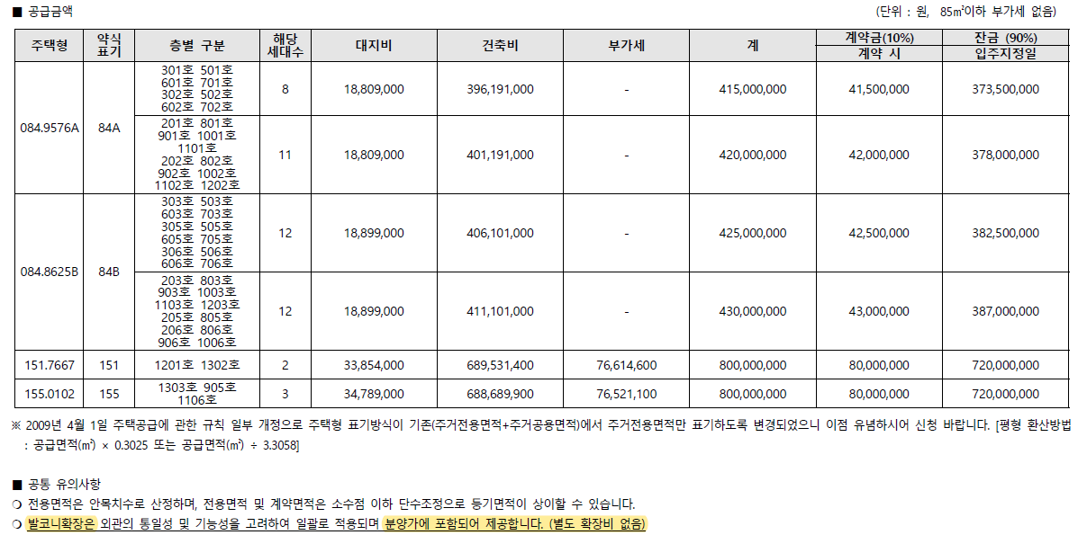 ▪ 84A : 4.15억 ~ 4.20억 [분양가포함]