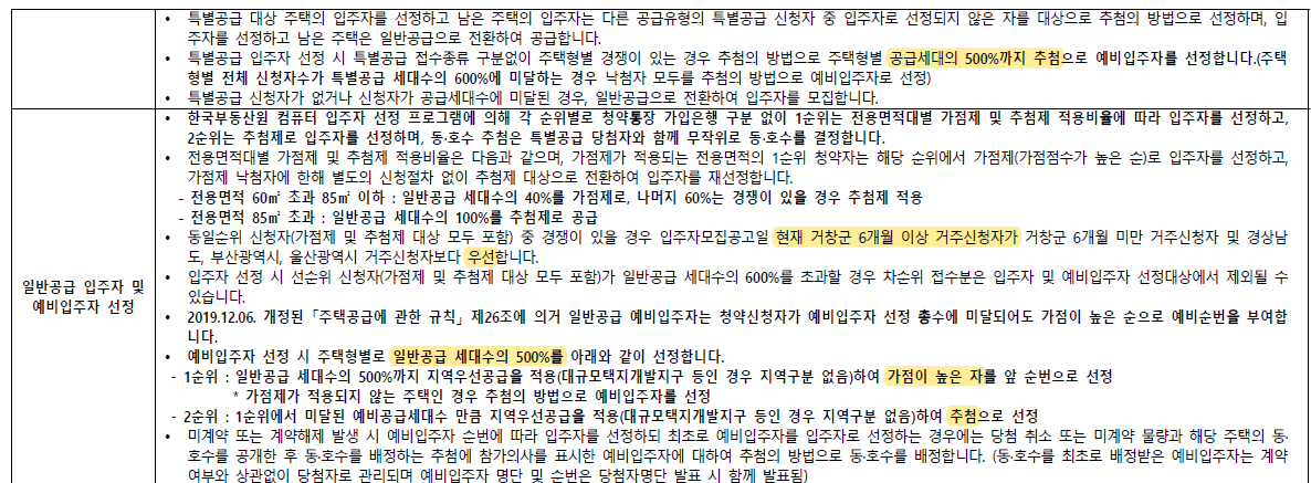 ▪ 전용면적 85m² 초과 : 추첨제 100%