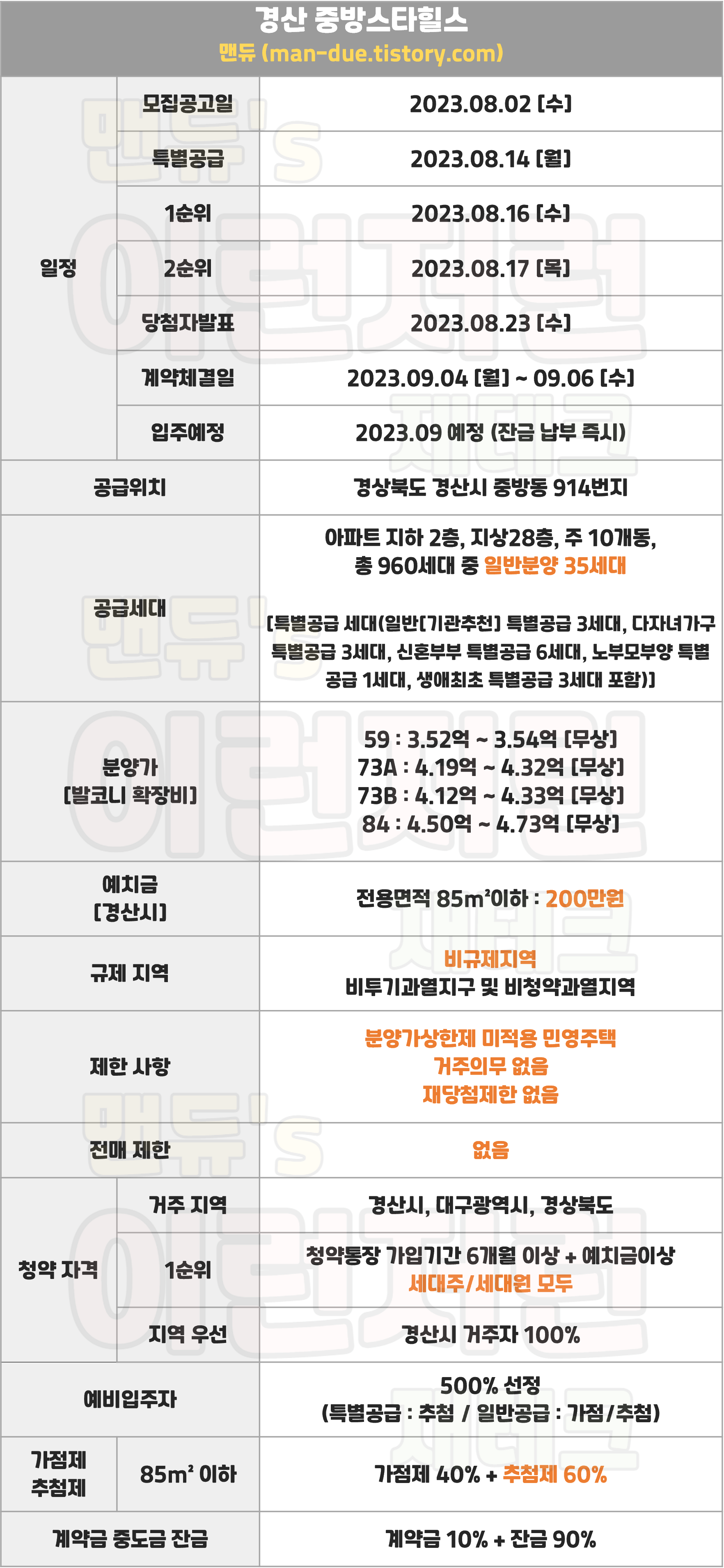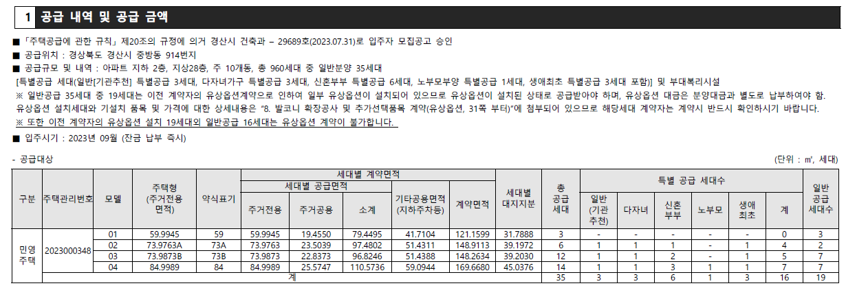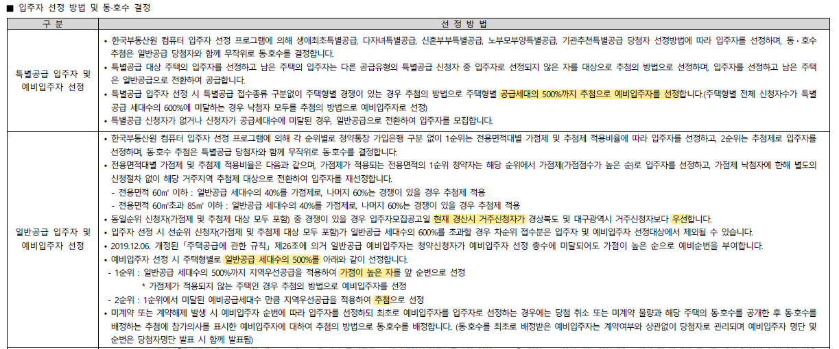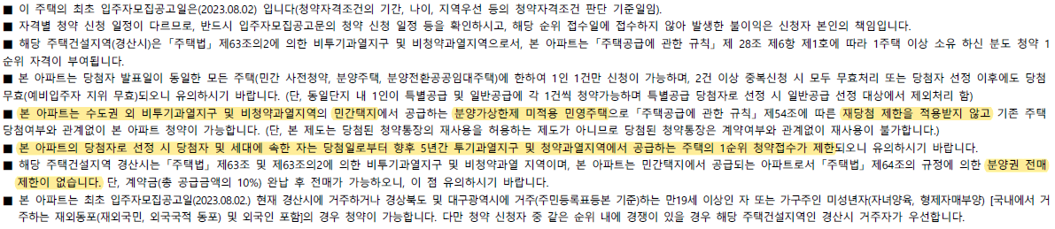 ▪ 재당첨제한 : 없음(5년간 투기과열지구 및 청약과열지역 1순위 접수제한)