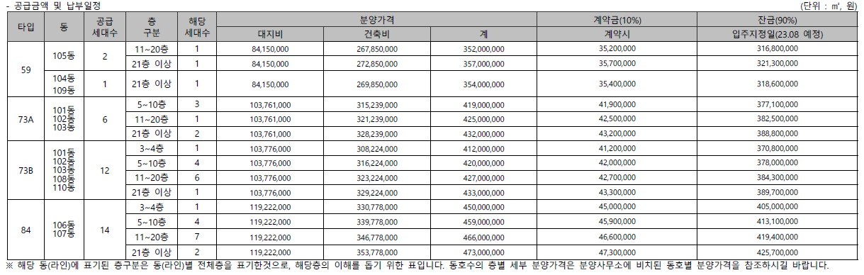 ▪ 73B : 4.12억 ~ 4.33억 [무상]