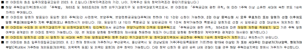 ▪ 재당첨제한 : 없음(5년간 투기과열지구 및 청약과열지역 1순위 접수제한)