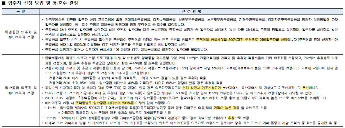 ▪ 특별공급 : 추첨