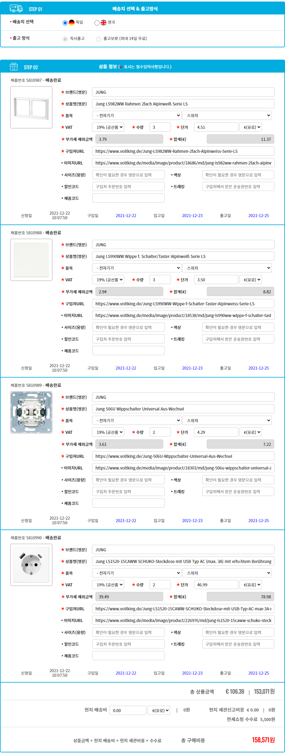 대충 원하는 사이즈의 가전들을 견적을 받아보니