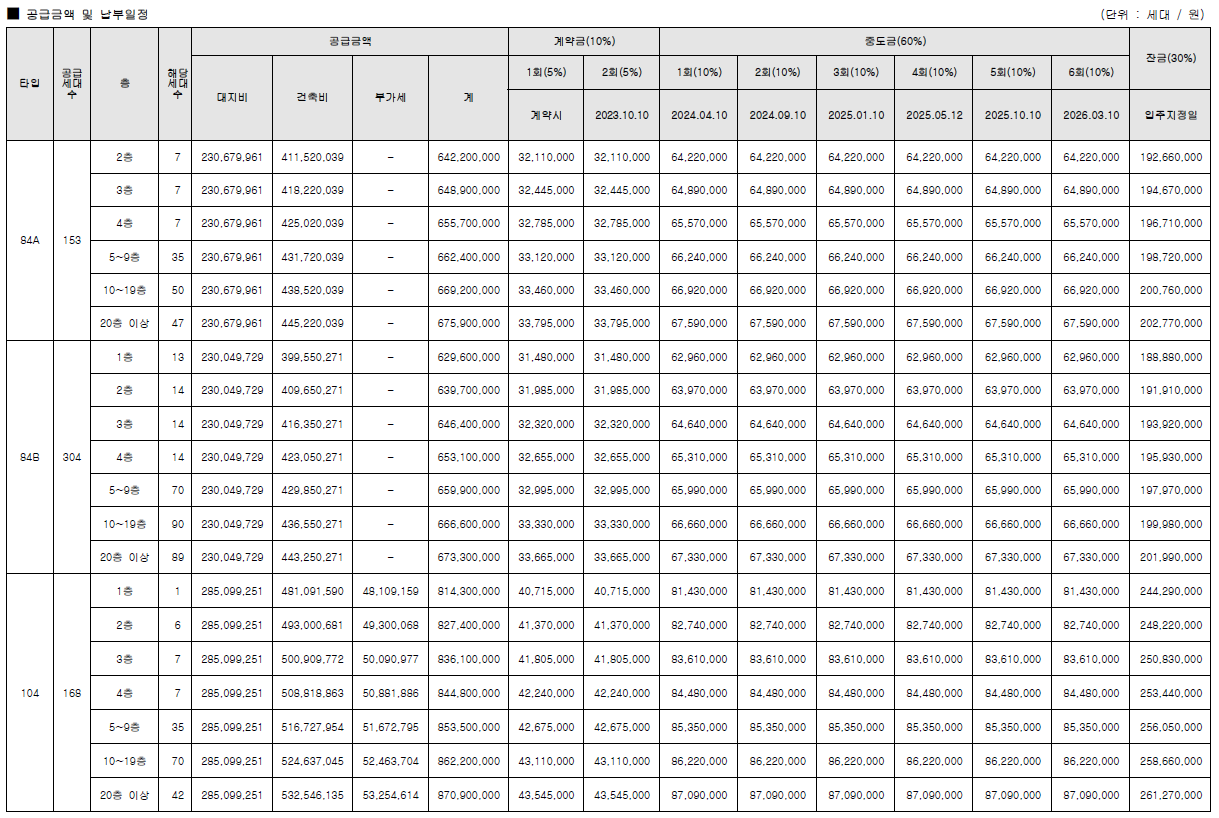 ▪ 계약금 10% + 중도금 60% + 잔금 30%
