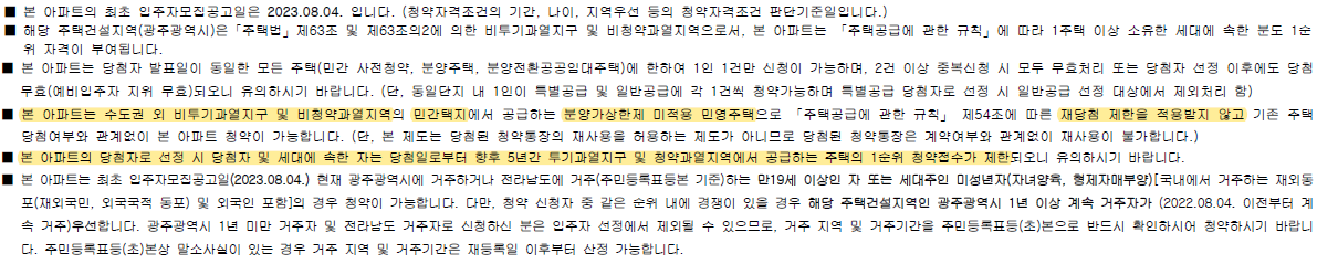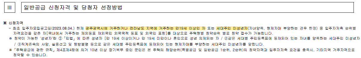 ▪ 지역 우선 : 광주광역시 1년 이상 거주자 100%