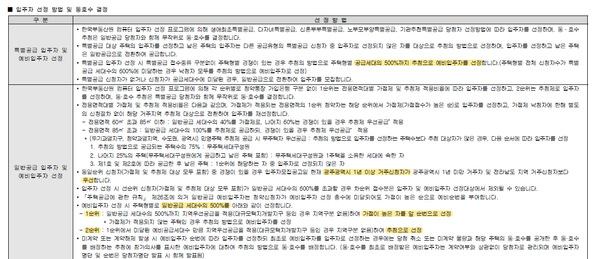 ▪ 전용면적 85m² 초과 : 추첨제 100%