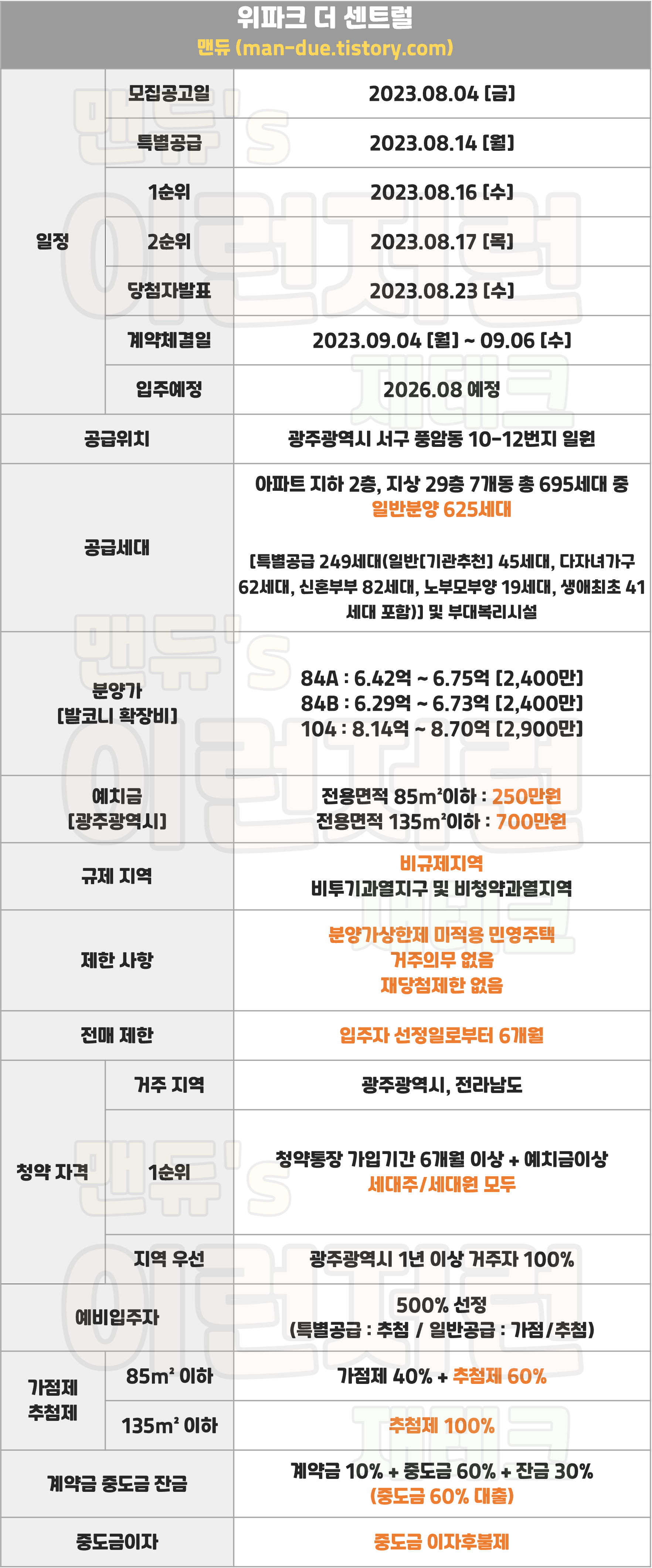 ▪ 재당첨제한 : 없음(5년간 투기과열지구 및 청약과열지역 1순위 접수제한)