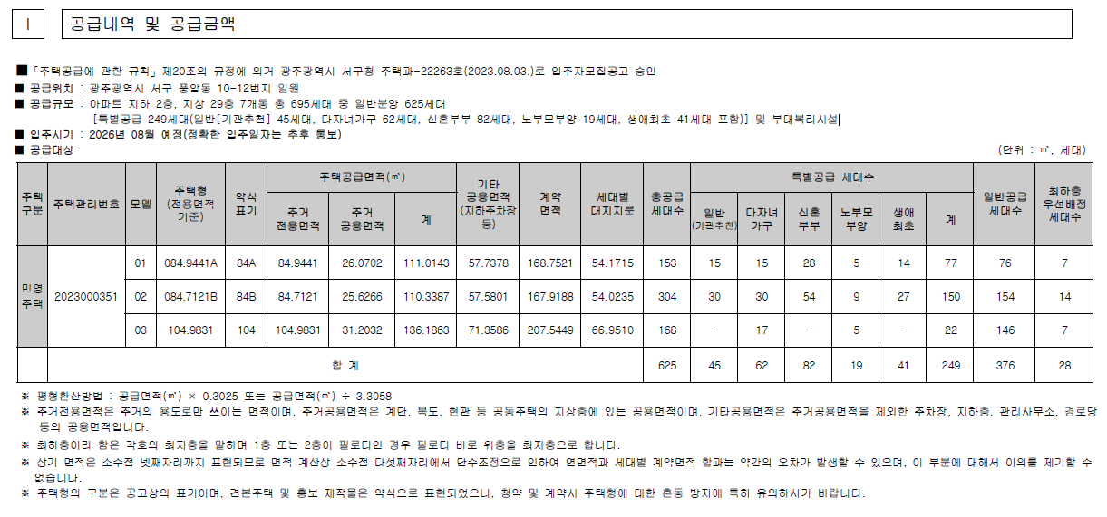 [특별공급 249세대(일반[기관추천] 45세대, 다자녀가구 62세대, 신혼부부 82세대, 노부모부양 19세대, 생애최초 41세대 포함)] 및 부대복리시설
