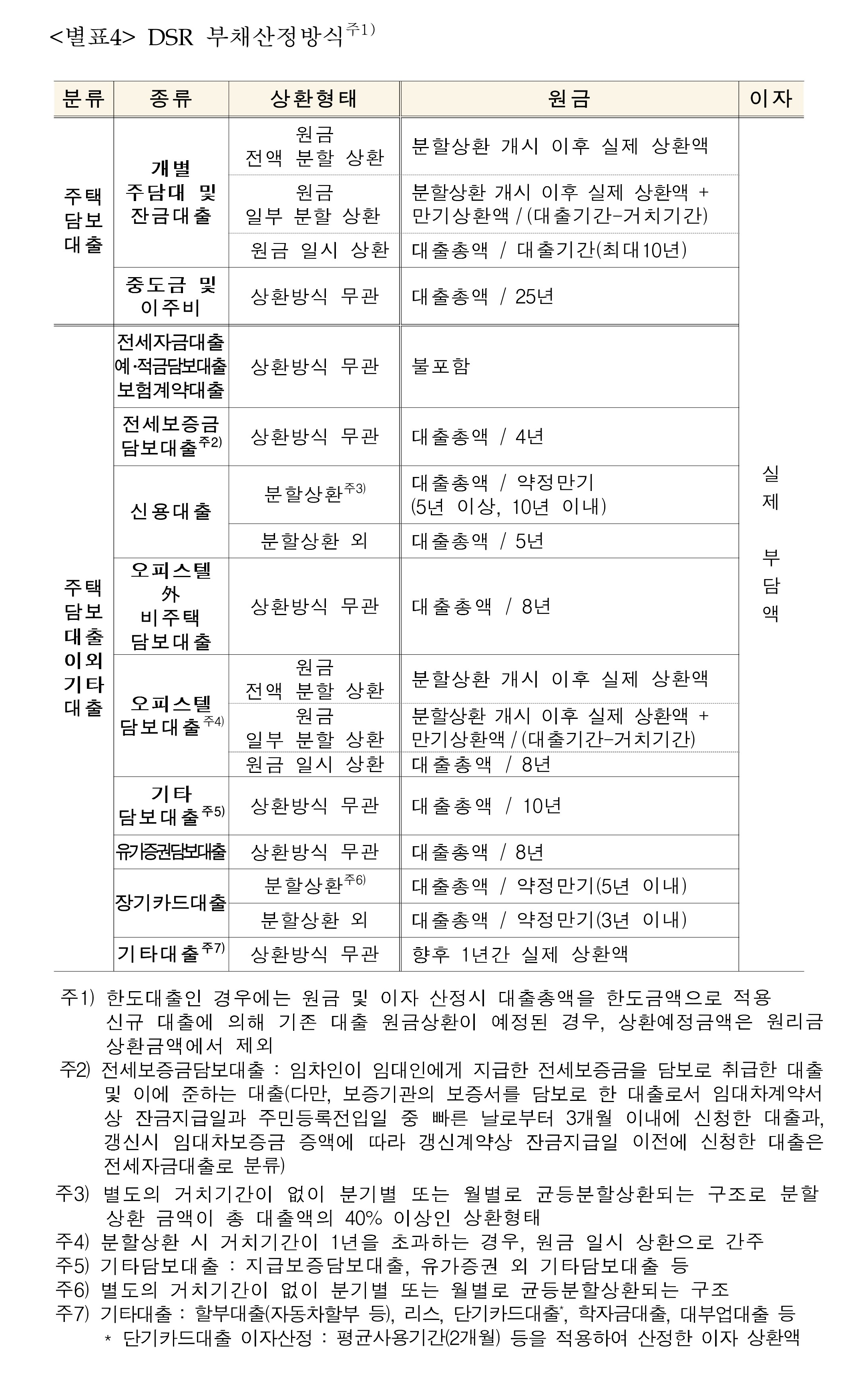 DSR 부채산정방식은 매우 복잡하니 아래 참고!
