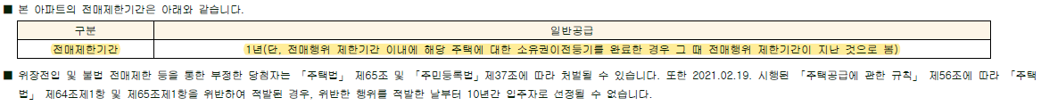 ▪ 전매제한 : 1년(소유권이전등기일이후 가능)