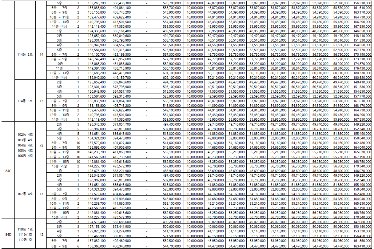 ▪ 84C : 4.86억 ~ 5.67억 [무상]