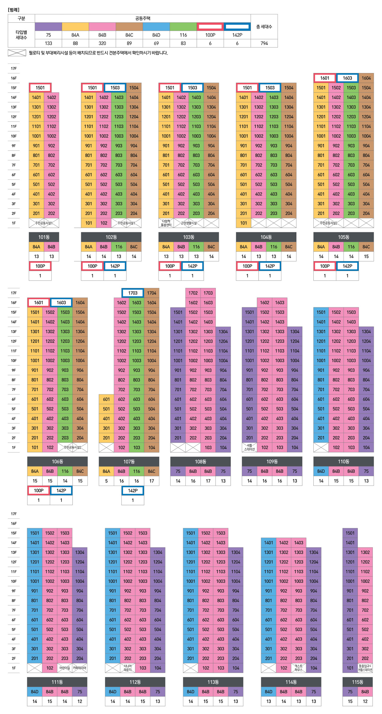 ▪ 아파트 지하 2층, 지상 17층 아파트 15개동 총 794세대