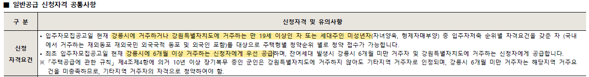 ▪ 지역 우선 : 강릉시 6개월 이상 거주자 100%