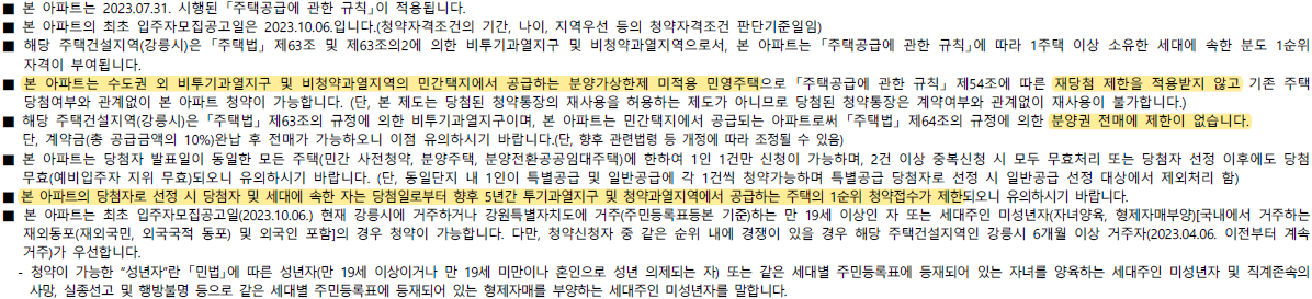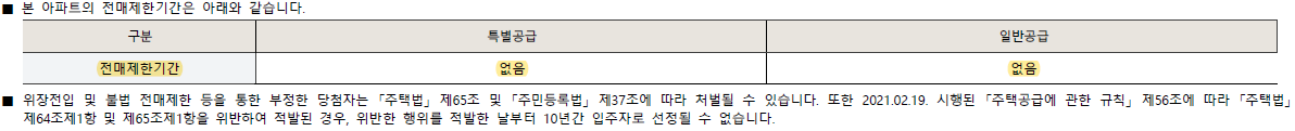 ▪ 재당첨제한 : 없음(5년간 투기과열지구 및 청약과열지역 1순위 접수제한)