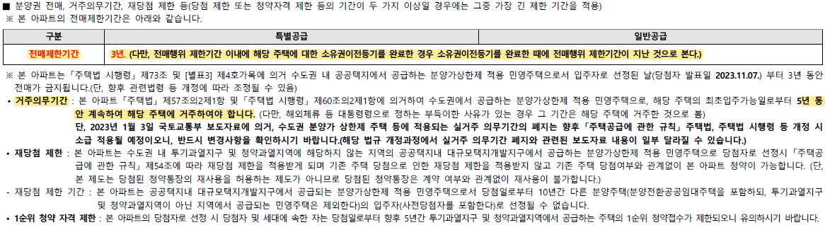 ▪ 전매제한 : 3개월(소유권이전등기일이후 가능)