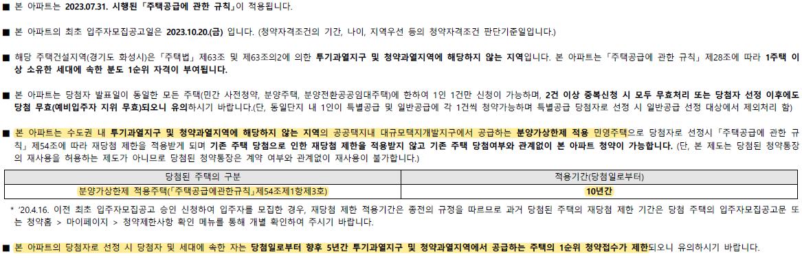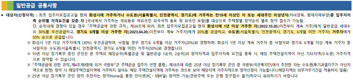 ▪ 지역 우선 : 화성시 1년 이상 거주자 30% + 경기도 6개월 이상 거주자 20% + 수도권 거주자 50%