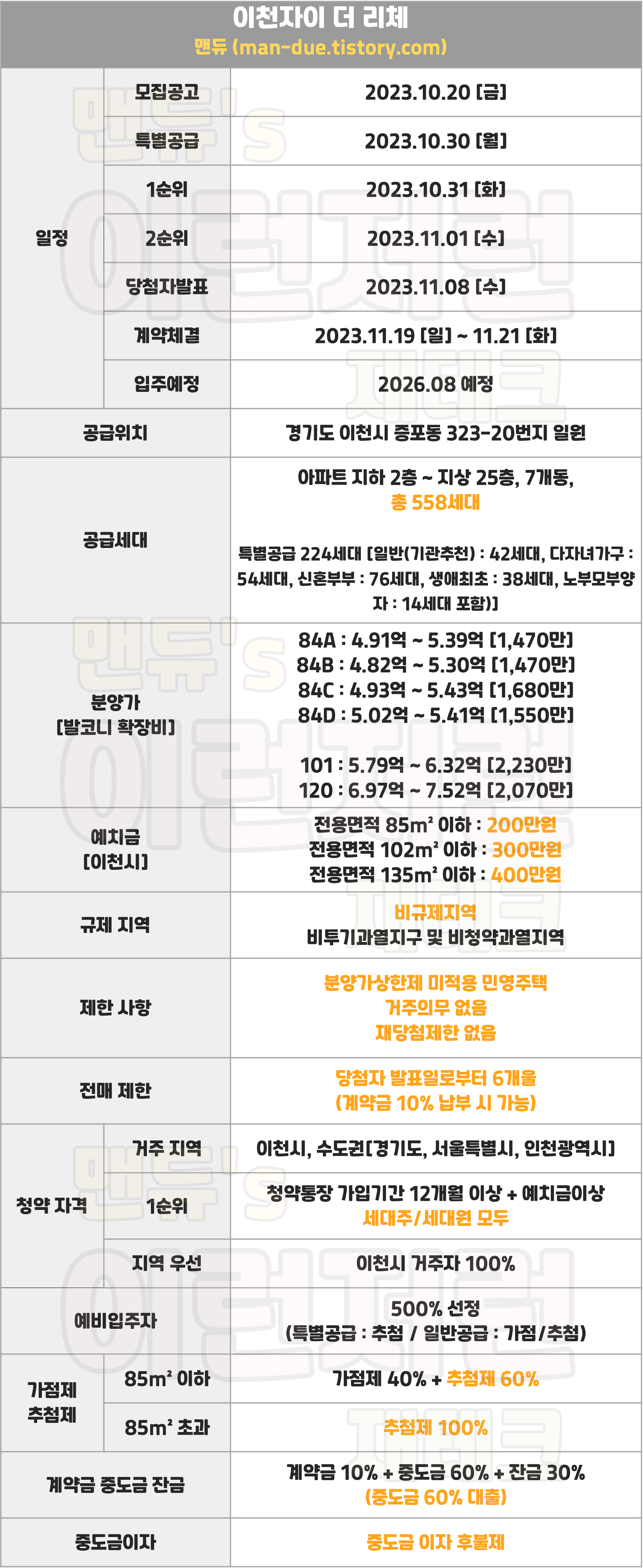 ▪ 재당첨제한 : 없음(5년간 투기과열지구 및 청약과열지역 1순위 접수제한)
