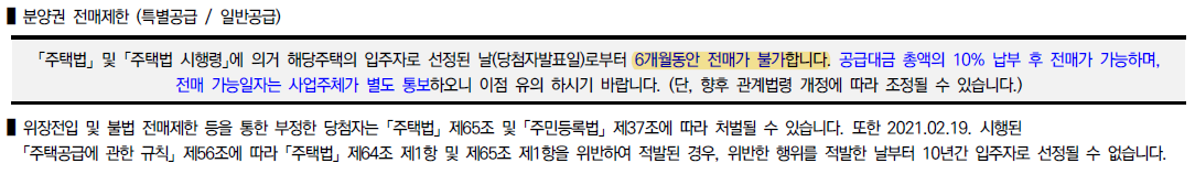 ▪ 전매제한 : 6개월(계약금 10% 납부 후 가능)