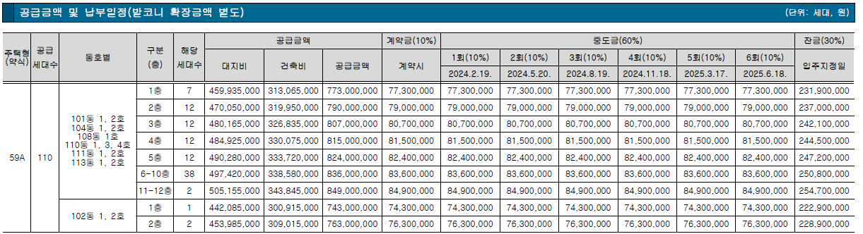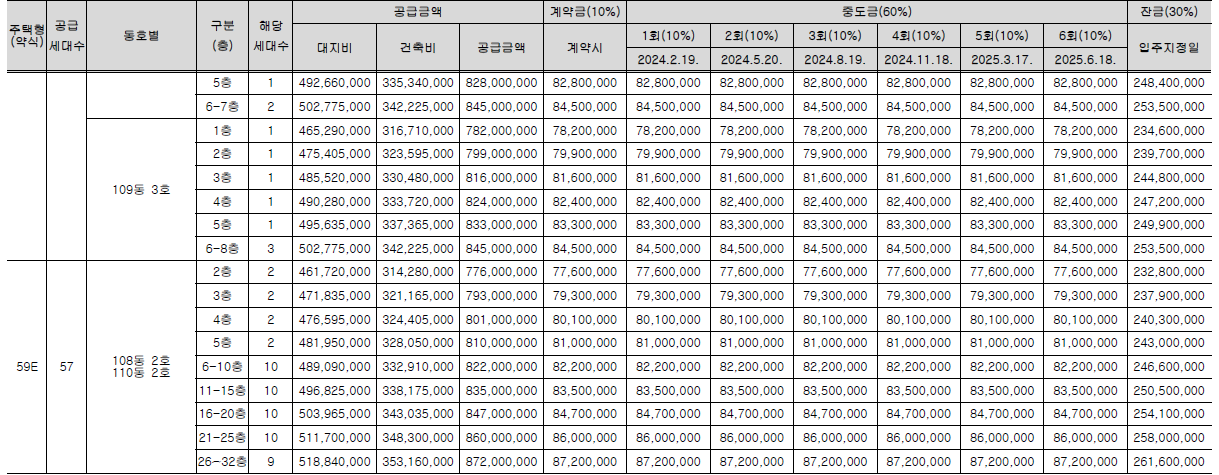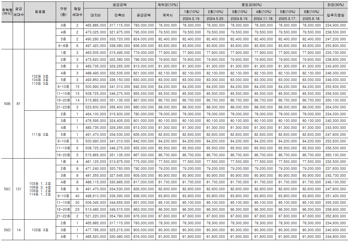 ▪ 계약금 10% + 중도금 60% + 잔금 30%