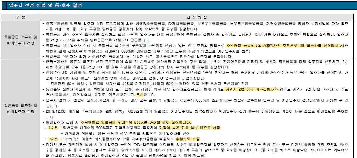 ▪ 일반공급 : 가점 / 추첨