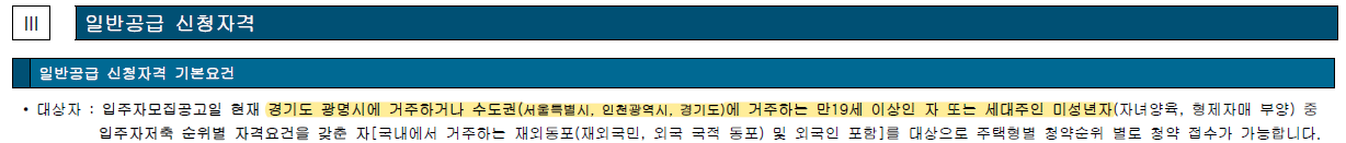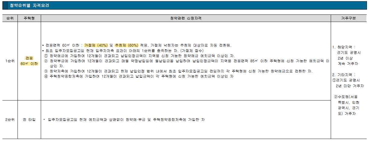 ▪ 지역 우선 : 광명시 2년 이상 거주자 100%
