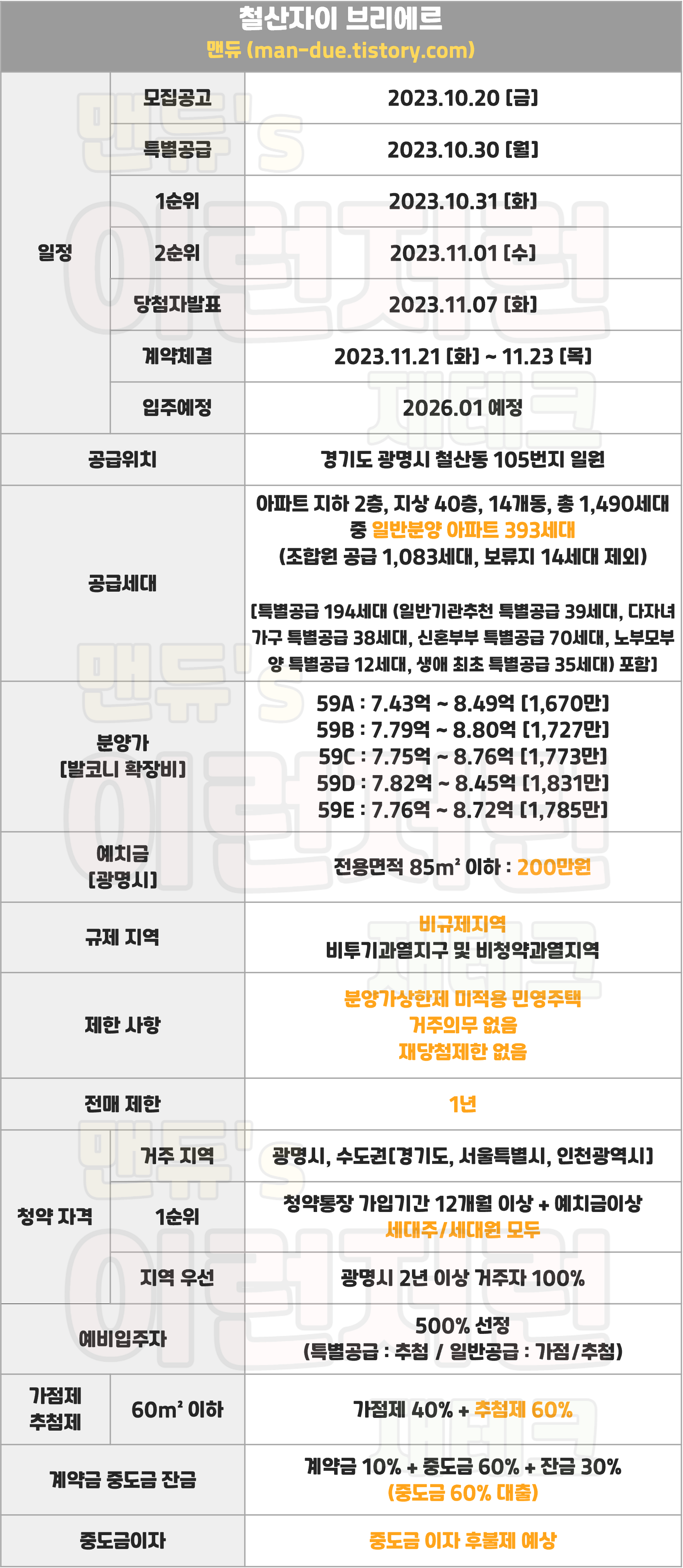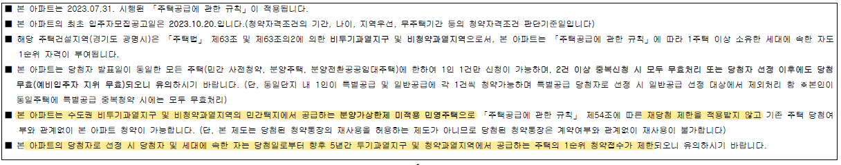 ▪ 재당첨제한 : 없음(5년간 투기과열지구 및 청약과열지역 1순위 접수제한)