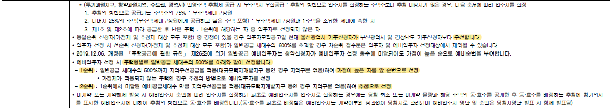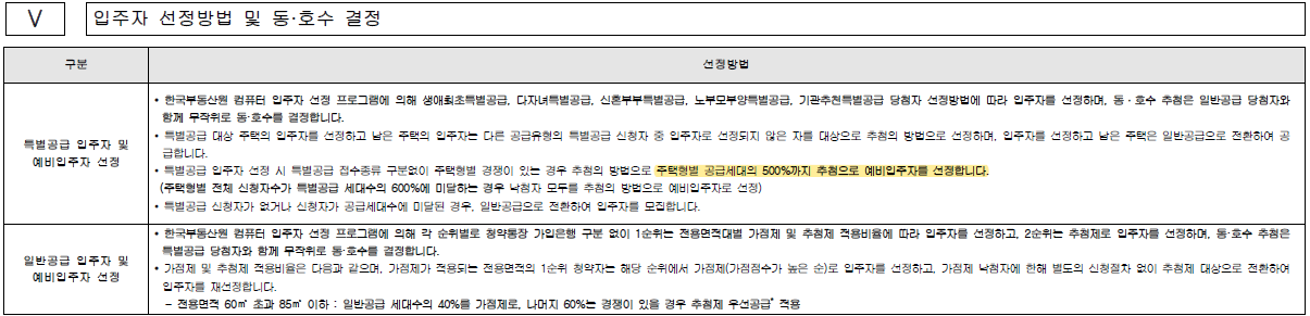 ▪ 전용면적 85m² 이하 : 가점제 40% + 추첨제 60%