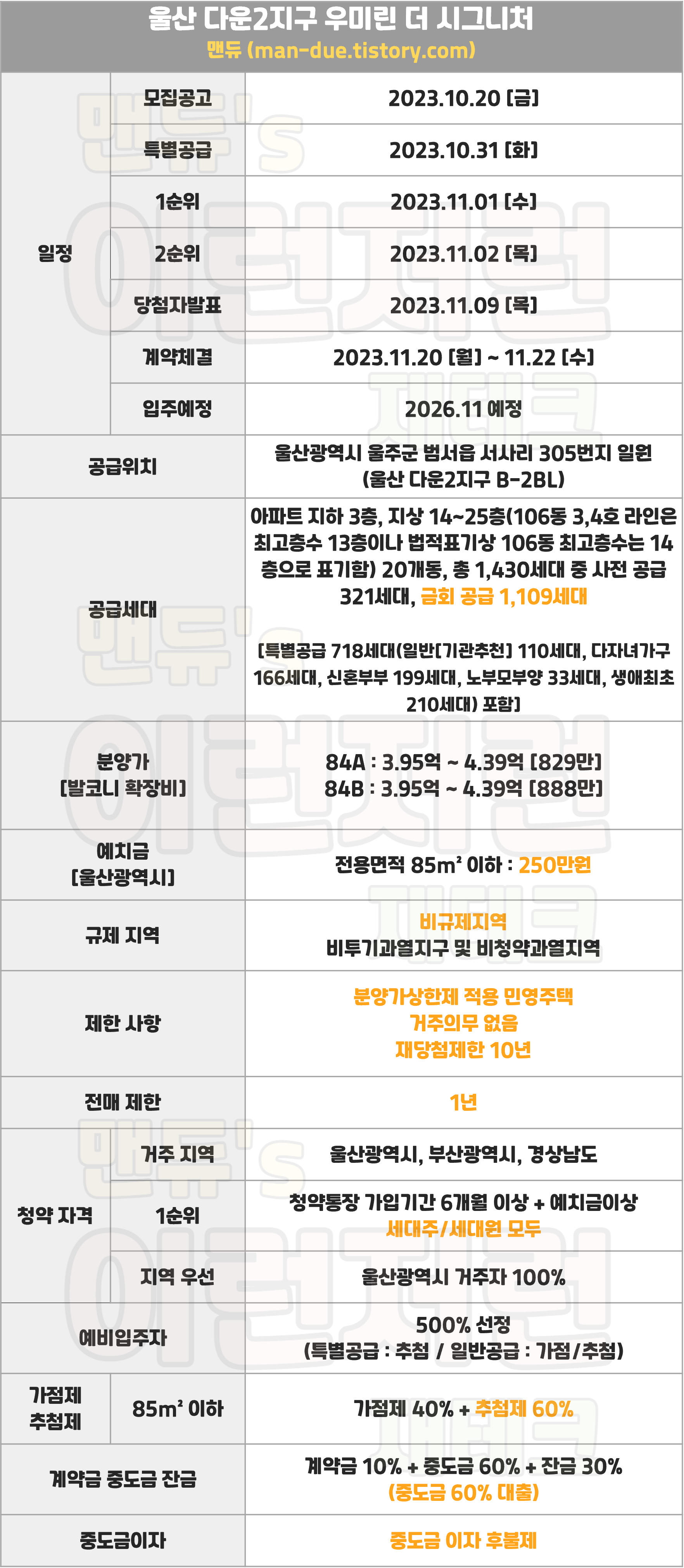 울산 다운2지구 우미린 더 시그니처 입주자모집공고