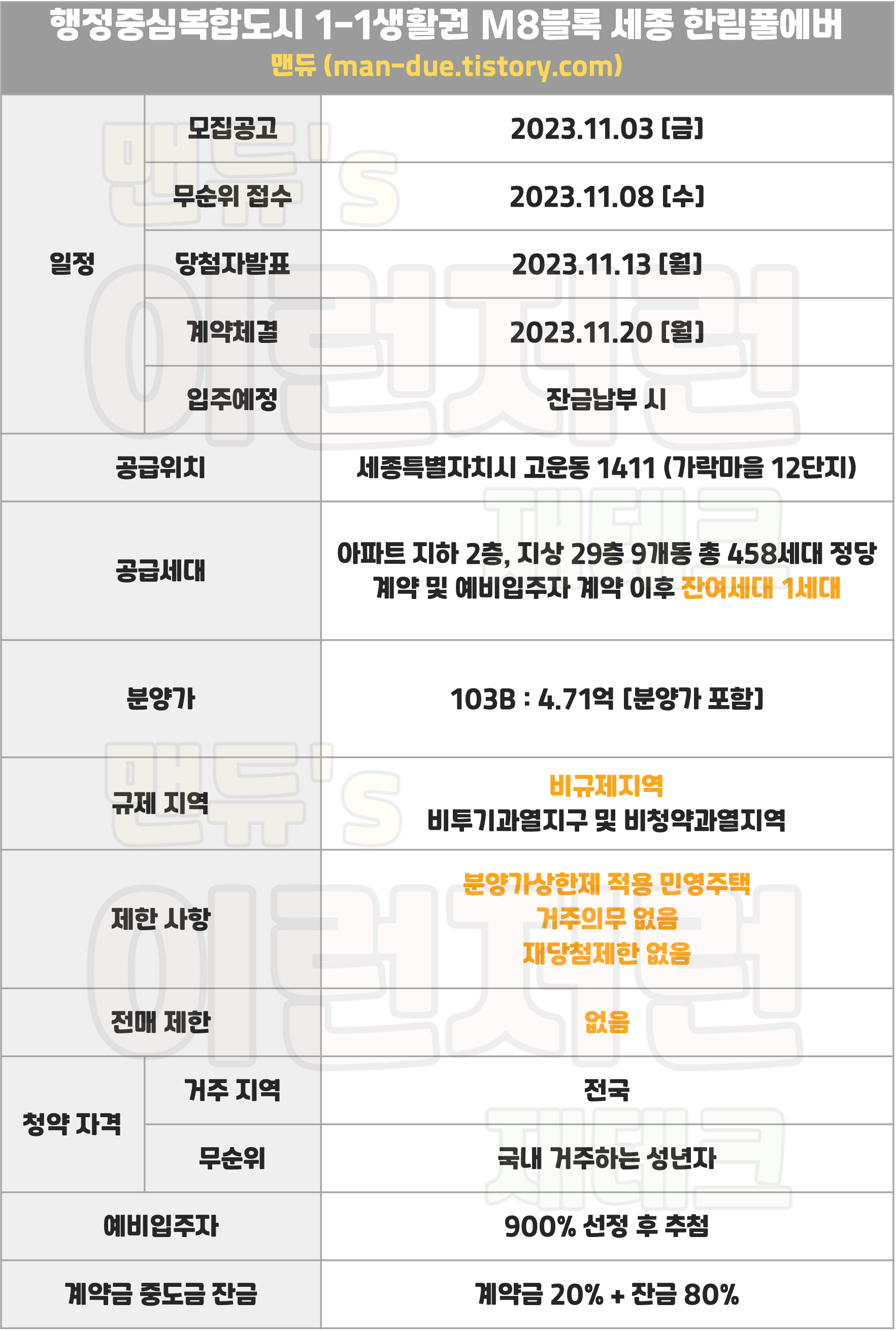 🏡 행정중심복합도시 1-1생활권 M8블록 세종 한림풀에버