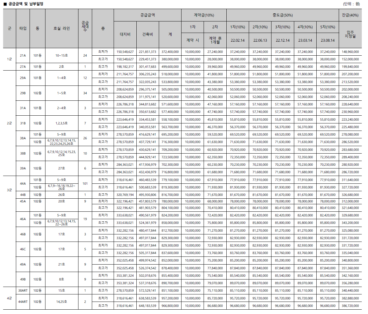 ▪ 계약금 10% + 중도금 50% + 잔금 40%