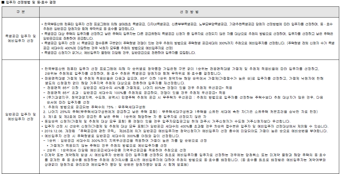 ▪ 전용면적 85m² 이하 : 가점제 40% + 추첨제 60%