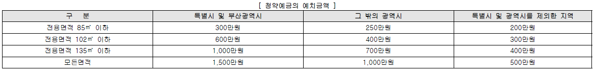 ▪ 청약통장 가입기간 6개월이상 + 예치금 이상