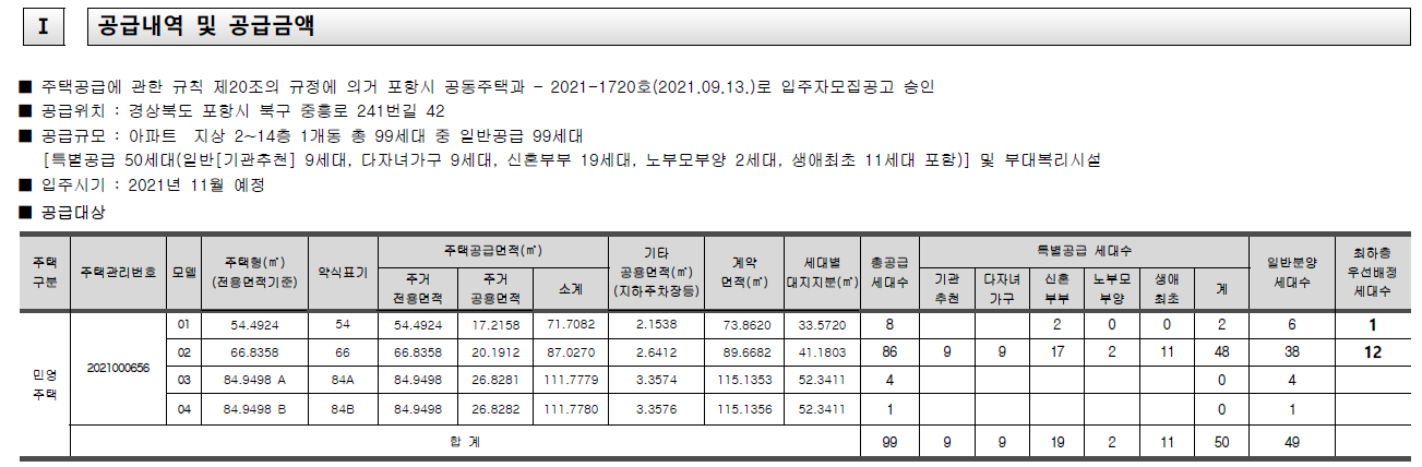 [특별공급 50세대(일반[기관추천] 9세대, 다자녀가구 9세대, 신혼부부 19세대, 노부모부양 2세대, 생애최초 11세대 포함)]